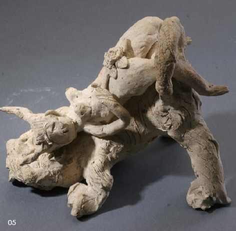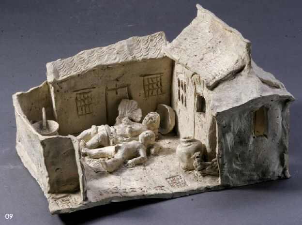 “刘士铭对形式的选择,显然有非常明显的艺术史考虑。他的泥塑和陶土系列,发展了一种源自汉代陶俑的浑然一体的形式和流畅不拘细节的做派,这似乎与他在中国历史博物馆修复组从事文物修复工作的经验有关。传统资源对于他是一种艺术史的启迪,一种精神和格调的升华,尤其是远离当下时代的艺术品所散发的亲切而神秘的感召力,对他产生了巨大吸引力,他找到了具有体现他热情和感性的承载体—— 一种源于民间的传统形态,经过时间的作用,凝练为具有经典意义的范例。”